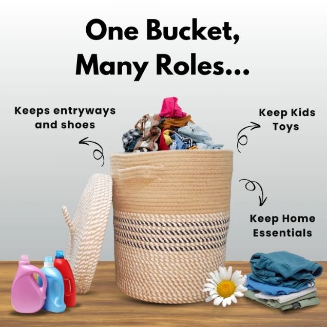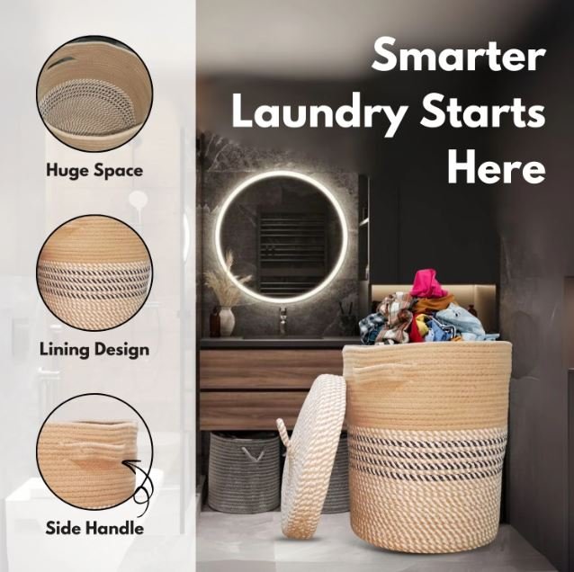 Keep your laundry organized with our Hand Woven Jute Cotton Laundry Basket. This beautifully crafted basket combines functionality with aesthetic appeal, making it a perfect addition to any home.