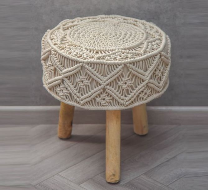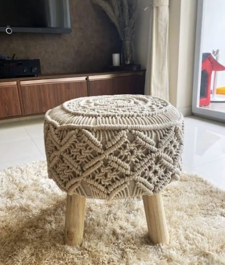 Elevate your home decor with our Handmade Macrame Pouf, a perfect blend of style and functionality. This exquisite pouf adds a bohemian touch to any room while providing comfortable seating and versatile use.